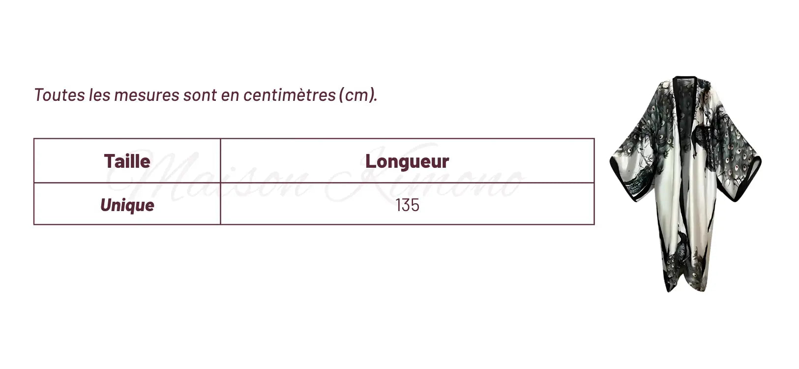 Kimono style soie blanc et noir avec motifs paon femme | Shiratori