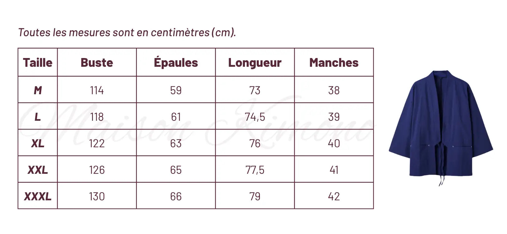 Nos kimonos suivent la coupe japonaise traditionnelle ample, offrant confort absolu et liberté de mouvement totale.