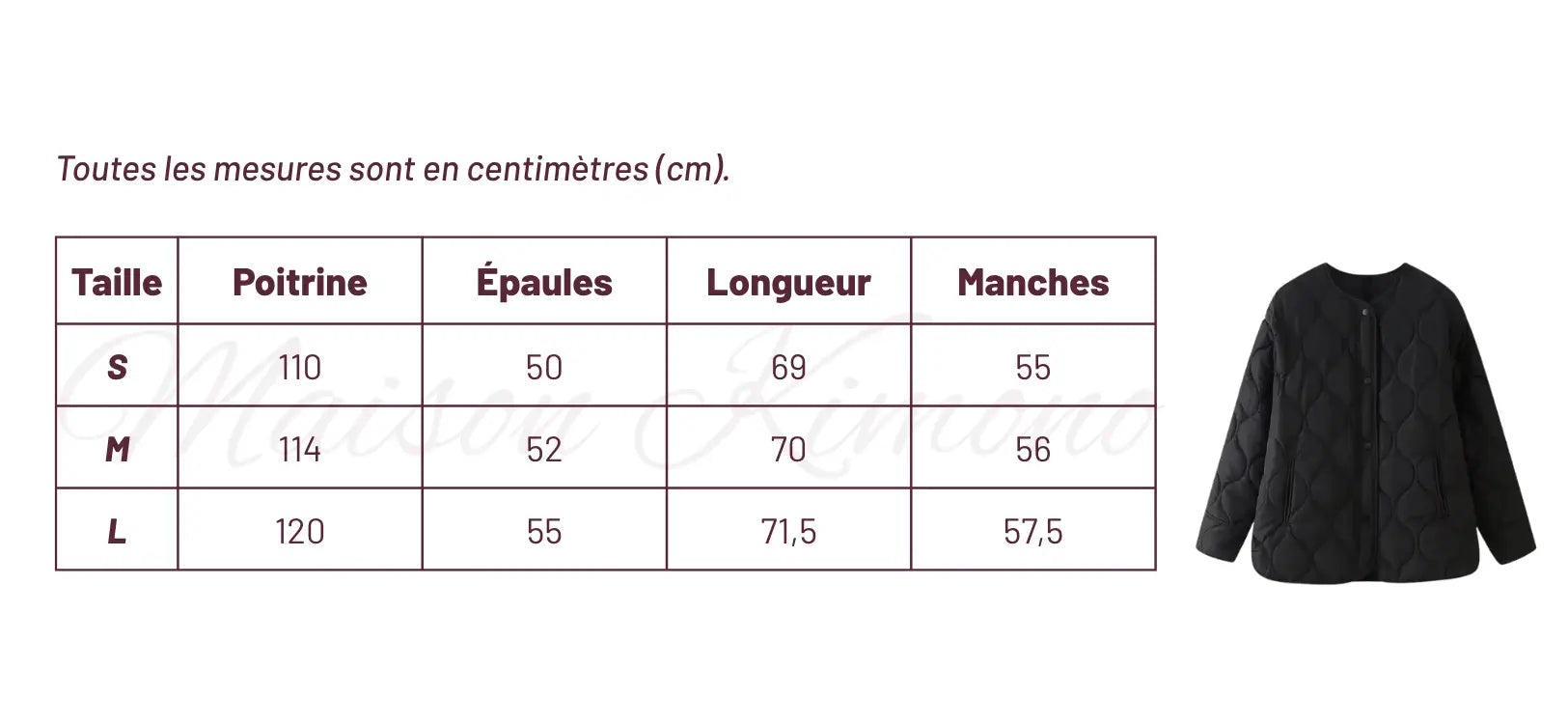 Ce kimono matelassé noir incarne l’élégance intemporelle japonaise. Sa texture matelassée apporte chaleur et structure, tandis que sa coupe oversize fluide sublime la silhouette. Minimaliste et raffiné, il associe col rond moderne, boutons-pression discrets et poches fonctionnelles, pour un vêtement polyvalent entre tradition et style contemporain.