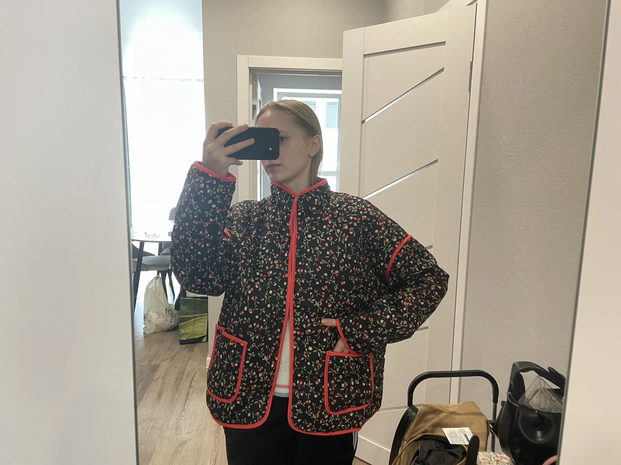 Cette veste kimono matelassée noire à liseré rouge incarne l’équilibre parfait entre chaleur et élégance. Ses motifs floraux délicats et ses finitions écarlates révèlent une sophistication discrète. Sa coupe droite et son col montant structurent la silhouette tout en offrant un confort douillet, idéal pour les journées fraîches et stylées.