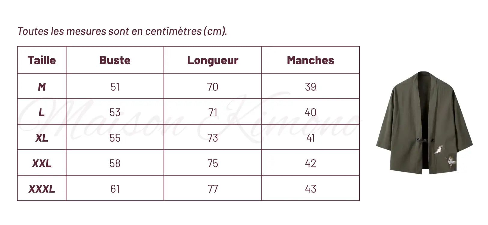 Nos kimonos suivent la coupe japonaise traditionnelle ample, offrant confort absolu et liberté de mouvement totale.